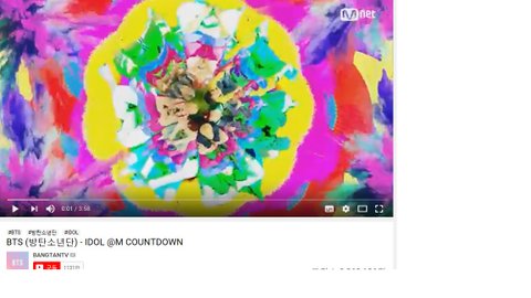 나 엠카에서 방탄소년단 아이돌 맨위에 최초공개라 되있는거.. 처음 본 이후로 자기전에 맨날봄..