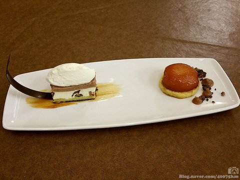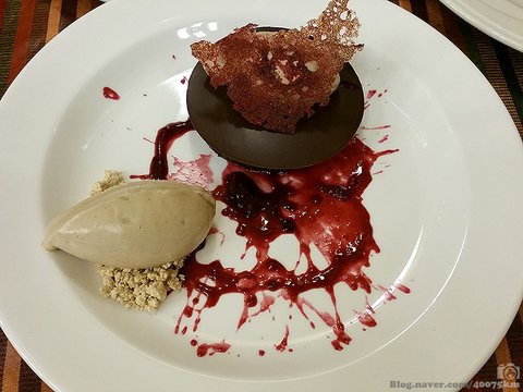 아이스크림이 녹아서 소스가 되어버린 디저트 플레이팅을 보며 '나중에 돈 많이 벌면 학교에 디스플레이 냉장고를 기증해야겠다'라는 생각을 하게 됩니다.