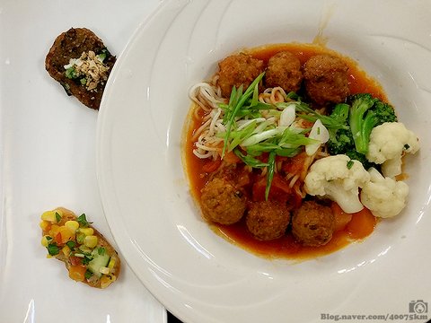 중국요리와 이탈리안 요리 퓨전인 듯한 미트볼 누들.