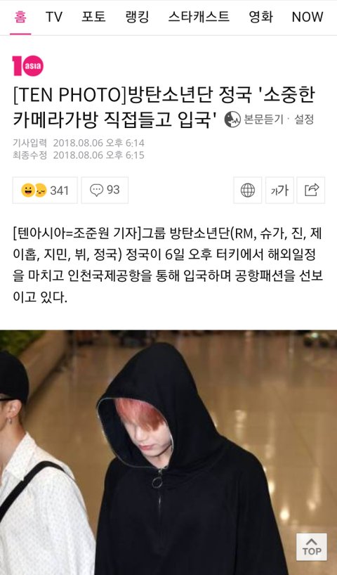 이 때 든 가방이 지민이가 캐1논룩을 막기위해 선물한 가방이라지..♡