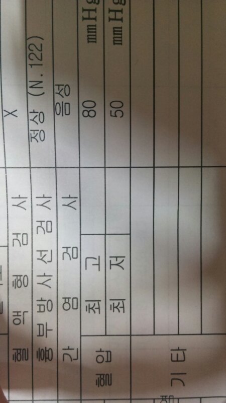 점심 먹고 2시간 쯤 지난 후에 혈압을 쟀어 그 때 80/50이 나왔었단말야