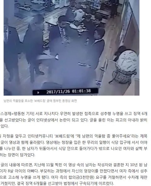 저장면을 성추행이라 판단하고 징역6월선고 및 즉시 법정구속
