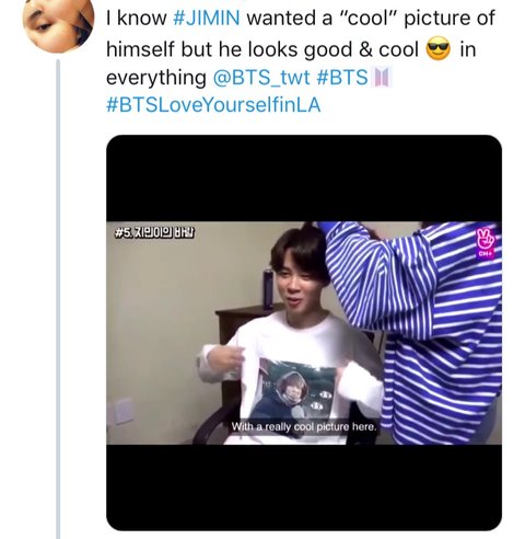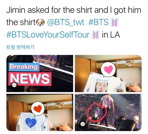지민이가 아꼬티 입은 달방 비하인드에서 자기 사진 넣은 티셔츠 만들어 달라고 했었던 거 기억나?