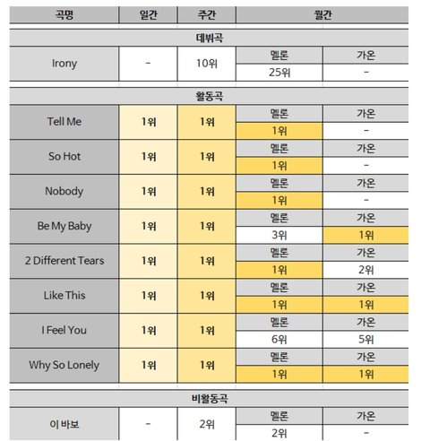 11년차에도 월간차트 1위. 연간 6위한 걸그룹이 원더걸스임