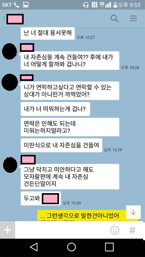 시간이 한참 지나서야 핸드폰 노트북 등에서 그녀가 말한 사실들이 허위임이 드러났지만 그렇게 피해본 저는 어떤 사과의말도 없었고 아직도 가해자 신세입니다.현재 재판에서도 몰아가듯 추궁당하였고. 한순간 범죄자로 낙인되어 300만원을 물어내야 하는 상황이 됐습니다.
