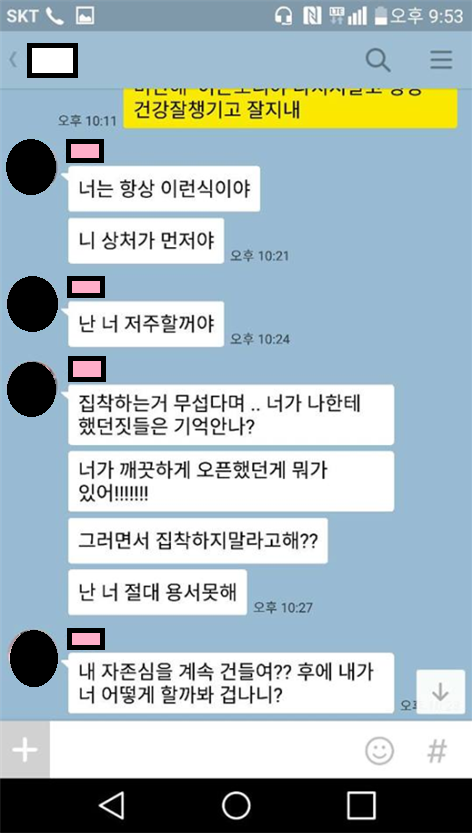 그런 까닭에 데이트하다 지나가는 여성과 부딪히는 일이 있으면 온갖 욕을 난무하며 별것도 아닌게 까불고 있다며 싸움으로 번지기 일수였고, 급기야 나이드신 어르신들에게까지 거침없이 소리를 지르기를 반복했습니다. 갑질적인 그녀의 행동을 타이르기를 반복하기 힘들어지자 조심스럽게 이별선고를 했습니다.
