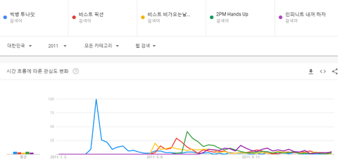 빅뱅 투나잇, 2PM 핸즈업, 비스트 픽션, 비스트 비가 오는 날엔, 인피니트 내꺼하자
