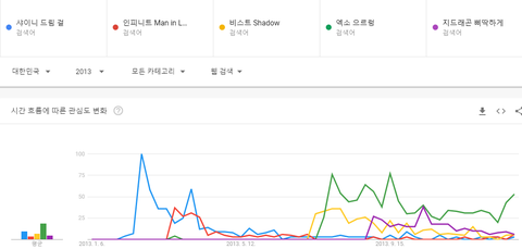 엑소 으르렁, 샤이니 드림걸, 비스트 섀도우, 지드래곤 삐딱하게, 인피니트 맨인러브