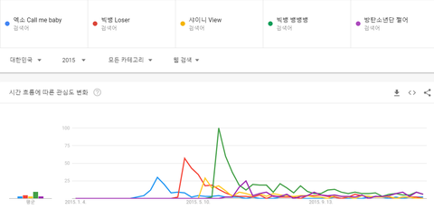 빅뱅 뱅뱅뱅, 빅뱅 루저, 샤이니 뷰, 엑소 콜미베이비, 방탄소년단 쩔어