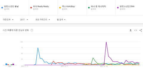 방탄소년단 DNA, 방탄소년단 봄날, 워너원 에네제틱, 위너 릴리릴리, 엑소 코코밥