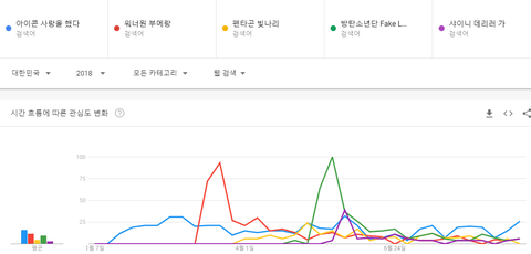 아이콘 사랑을 했다, 워너원 부메랑, 방탄소년단 페이크러브, 펜타곤 빛나리, 샤이니 데리러 가