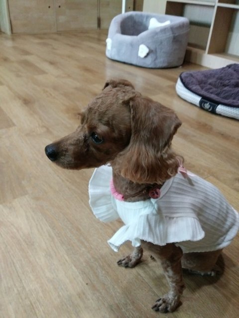 버려진 이유는 맞벌이라 혼자 있는게 안타까워 더이상 키울수가 없다고 다른집에 보냈다 저희쪽에게 오게된 아이예요.