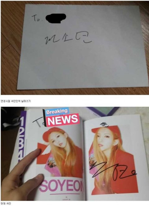 한 아이돌의 연습생시절 싸인과 현재 싸인