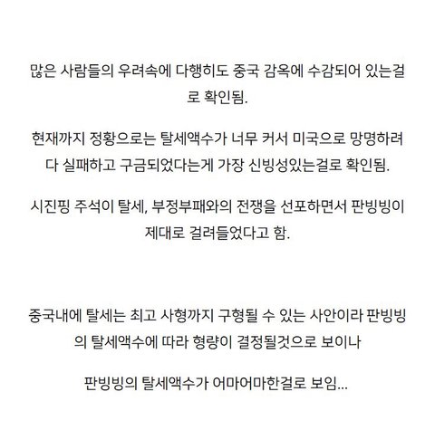 판빙빙 감옥에 있는걸로 뉴스 나옴