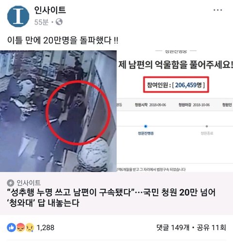 이번 보배드림 사건 이틀만에 청원이 20만이 됐다고함..
