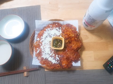 또 비오는날 먹었던 김치전 가운데 구멍 뚫어져있어요ㅎㅎ