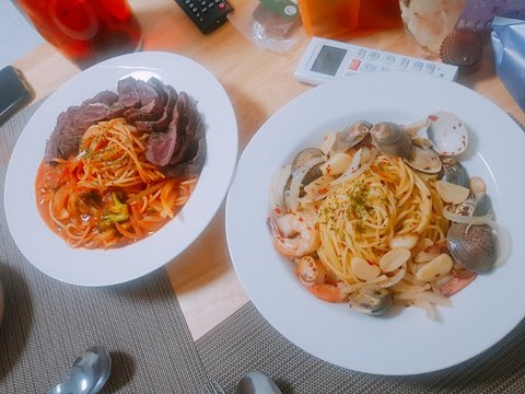 스테이크 로제파스타랑 오일파스타~에는 홍초소주