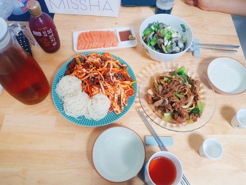 골뱅이무침하고 바지락술찜과 냉동실에있던거 다볶기~
