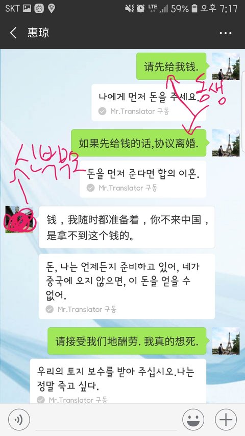 저만 모르고 있었을 당시 모든 사실들을 조용히 우리 선에서 이혼 처리를 하고 조용히 중국으로 보내달라고 동생을 설득을 하였습니다.