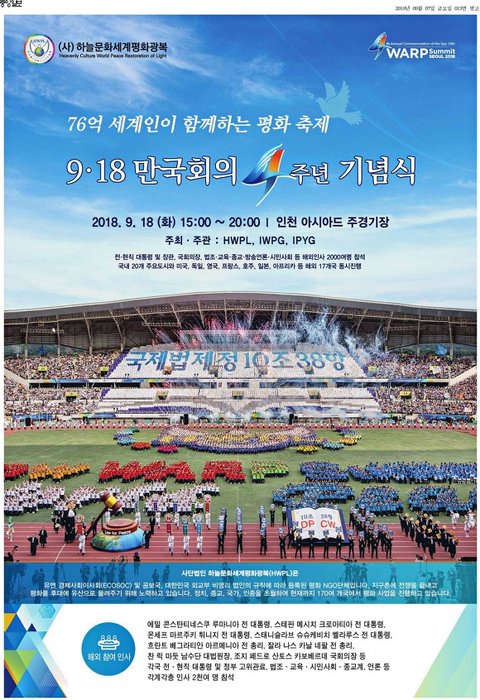 HWPL(사) 에서 주최하며 지구촌의 평화와  한반도 통일을 위하여