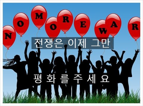 우리 후대에 평화를 유산으로 물려주기 위해서다함께 평화의 사자가 되어야 하겠습니다.