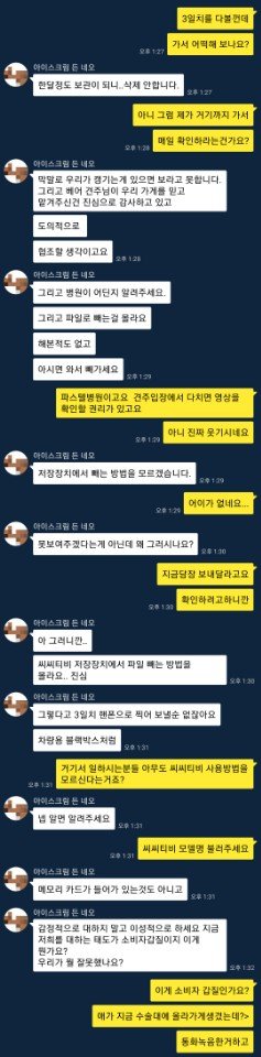 마지막이 더 가관이네요 ... 처음에는 관리 한달되고 삭제안한다고하더니 민사진행할예정이니 보관부탁한다고하니깐... 보관기간 주일이라며 벌써 지워지고있다네요 ...