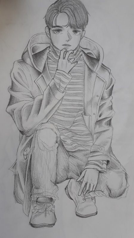 놀랍게도 세븐틴 버논 보고 그린 그림이다. 안닮은거 아는데 코트 그림자랑 자세 연습하려고... 음... ㅇ...얼굴가리고 보면 그래도 좀 괜찮아!!!!