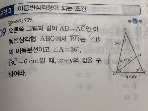 사진 돌아간거 미안 ㅠㅠㅠ 삼각형 BCD가 왜 이등변삼각형인지 이유좀 알려줘ㅠㅠㅠㅠㅠ 눈으로 보기엔 이등변삼각형인데 쌤은 맨날 왜 어디가 같아서 이등변삼각형이냐고 물어봐서... 어디가같아서 이등변삼각형이야??