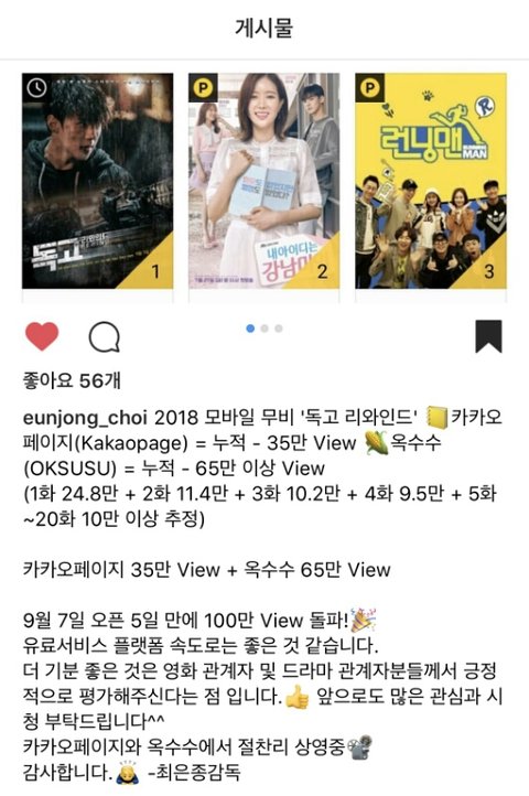 180911 독고리와인드 감독님 인스타그램(백만뷰돌파!!!!)