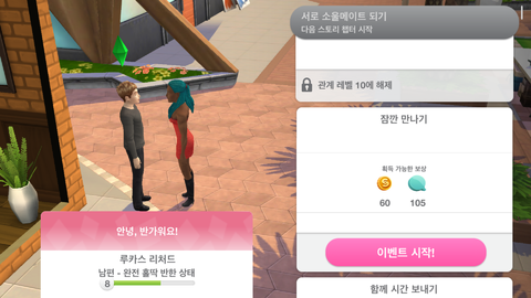 내가 모바일 심즈를 하는데 여자심 남자심 하나씩만들어서 룸메로만들었거든? 그리고 남자심한테 여자심이 일하던 카페 직원(남자)을 꼬시게만들어서 결혼했단말이야 ㅋㅋㅋㅋ근데 결혼하고나서 부부되더니 상대방 옷이바뀌었어 겁나 섹시한 드레스로 ㅋㅋㅋㅋㅋ원랜 그냥 티+바지에 카페 직원 앞치마였는데 이게뭐야 ㅋㅋㅋㅋㅋ