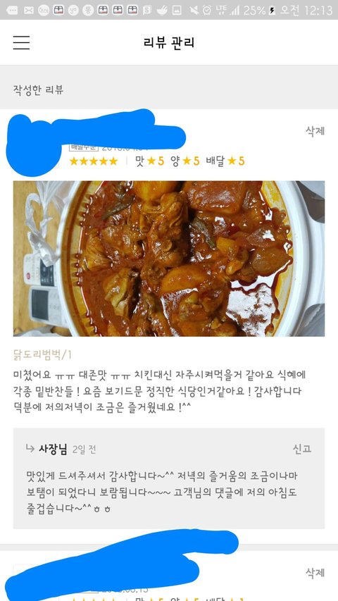 의문 3) 전날먹은 닭도리탕은 너무 맛있어서 극찬의 후기를 남김 . 그런 본인이 다음날 모기나왔다고 거짓말을 칠까 ?