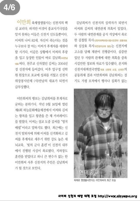 현대종교-사이비 신천지 이만희와 김남희의 내연관계 의혹 증폭