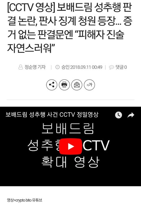 요즘 보배드림같은데서 성추행에 대한 글이 많이 올라오는데,앞서 짧막하게 이야기하며 나도 고등학교 3학년 때 감금, 강간, 폭행을 당한 피해자야.물론 신고도하고, 여러군데에서 도움을 받아 가해자를 감옥으로 보내는건 성공했지
