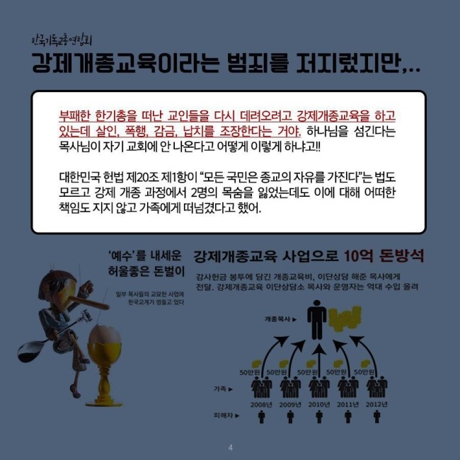 이를 안 많은 신앙인들이 부패한 한국기독교에서 등을 돌렸습니다.