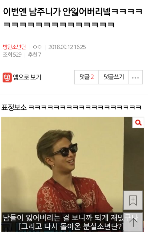 아랫글 남준이 글도 여깄어