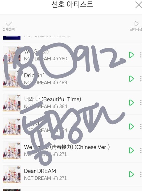 위의 예시를 따라서 쭉 스밍한 nct dream 곡들의 누적횟수를 인증해줘~
