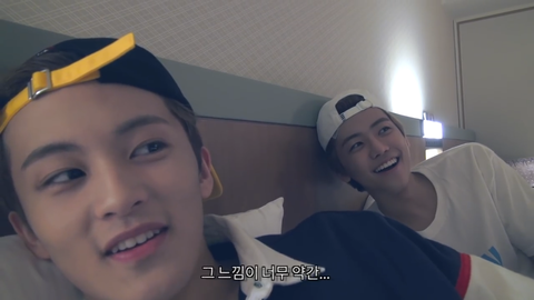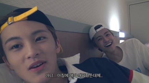 아침에 마크가 자고있을때 재민이 마크를 깨웠는데