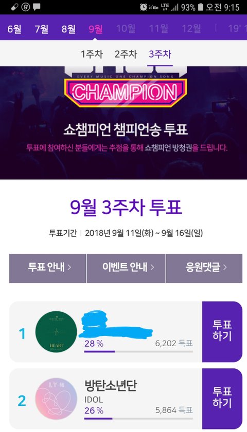 투표는 실시간 차트 밑에 보라색으로 있어 이겨보자