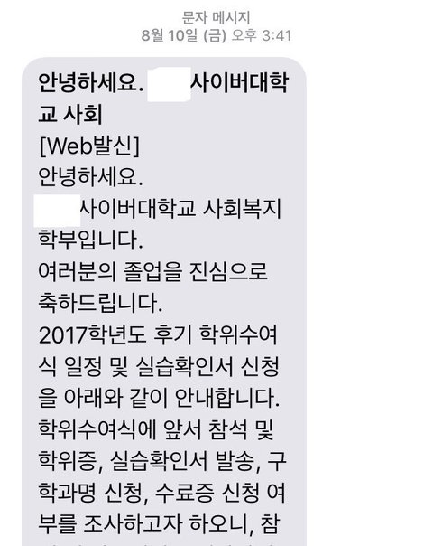 학부에서 전화가 왔습니다. 그러고는 제가 졸업처리가 이미 8/25부로 되었기 때문에