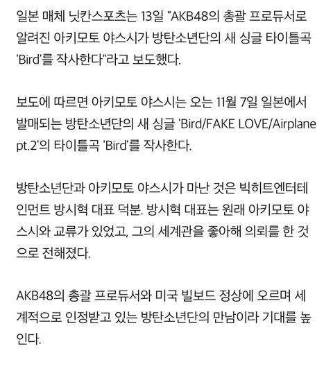 드디어 미쳤구나ㅋㅋㅋㅋ뭐? 그의 세계관을 좋아해 우익프로듀서한테 의뢰를 해?방시혁 니눈에는 거의 딸뻘인 akb 미성년자 멤버들 가지고 저딴 쓰레기같은 원조교제 가사 쓰고 부르라고 하는 우익 프로듀서의 세계관이 좋아보이냐?ㅋㅋㅋㅋㅋ미친새끼 와
