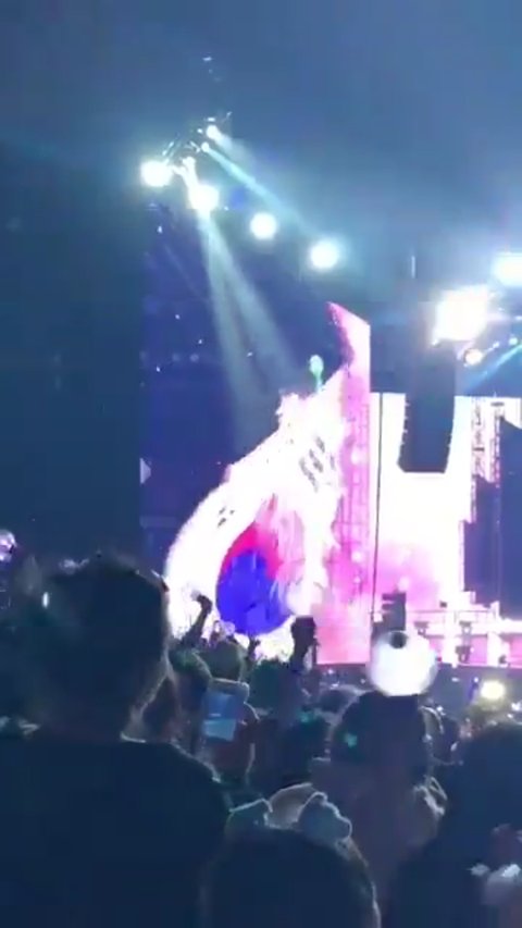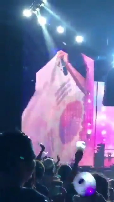 신발 방탄은 콘서트에서 태극기 흔들고 있는데