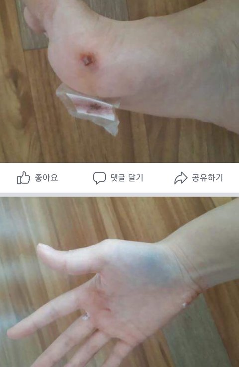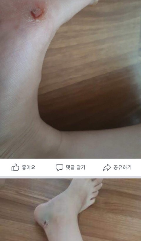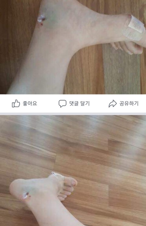 본인도 놀라서 식은땀나고 어지럽고 발목쪽은 피는 안나는데 너무 찌릿거려서 일단 견주한테 번호알려주고 택시타고 집으로왔는데 와서 보니까 발가락주변에선 피엄청나고 발목퉁퉁부어서 9시경에 병원으로 가서 응급처치받고 왔답니다ㅜㅠ