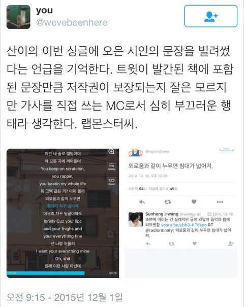 그리고 이건 논란일궈지자 랩몬이 트위터에 직접 올린 사과문.