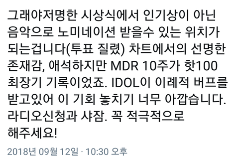소셜상도 좋지만 음악상 후보 넘나 간절해짐ㅜㅎ 그러기엔 현재 순위가 많이 아쉽가하지ㅜㅜ