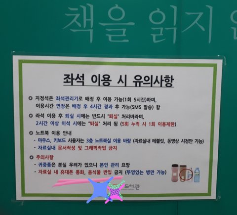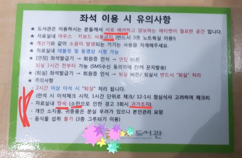 참고로 독서실 벽과 좌석마다 붙어있는 유의사항입니다.