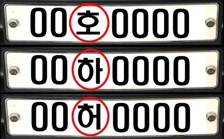 대여사업용 자동차 고유번호판 : 허 , 하, 호