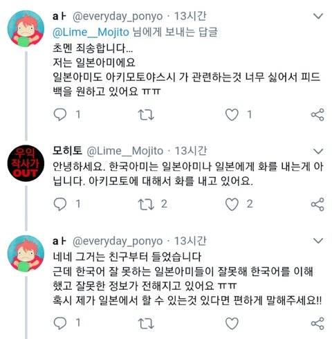 저거 말고도 겉으로는 한국어로 고맙다 어쩌다 아키모토 싫다 조카 친절하게 말해놓고 한국아미 까는글이나 민윤기 까는글 리트윗한애들 겁나많아 셀 수 없을정도로