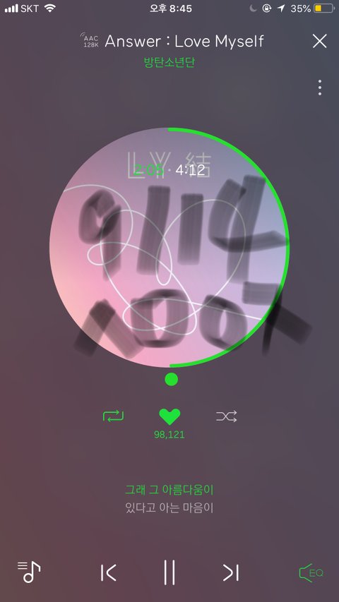 Lovemyself 들으니까 또 울컥한다