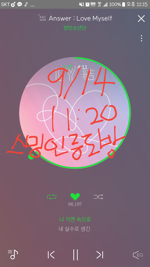앞으로 스밍인증 도방!꼭읽어줘 날짜+글쓰는시간