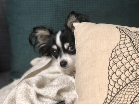 쿠션사이로 엄마 훔쳐보기
